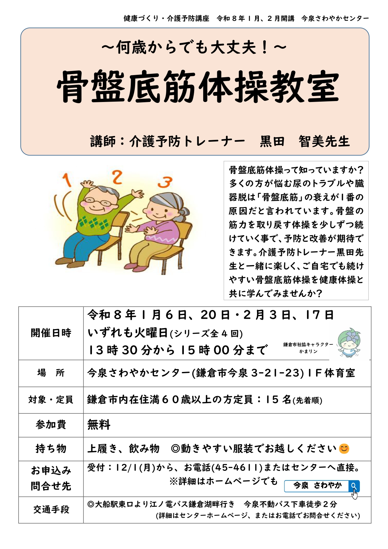 場 所:今泉さわやかセンター(鎌倉市今泉3-21-23)1F体育室